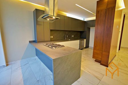 En la planta baja, se encuentra la sala y comedor integrados, junto con una cocina totalmente equipada, diseñada para los amantes de la gastronomía, con plafones de luz indirecta que crean un ambiente acogedor y moderno.