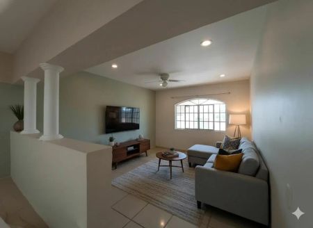 La planta superior alberga una versátil sala de televisión que puede convertirse fácilmente en una cuarta recámara, adaptándose a las necesidades de su familia. La recámara principal ofrece la privacidad que busca, con su propio balcón, un clóset de pared a pared y un baño completo que incluye un vestidor adicional. Las dos recámaras secundarias son amplias, con clósets de pared a pared, y comparten un baño completo.