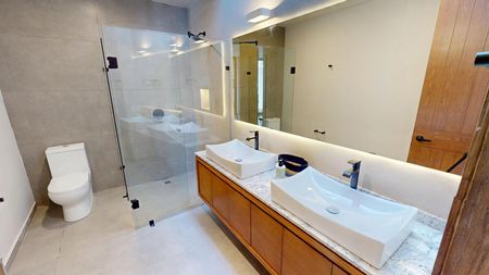 • 1 Recamara Ppal. con vestidor, baño completo. Cuenta con preparación para aire